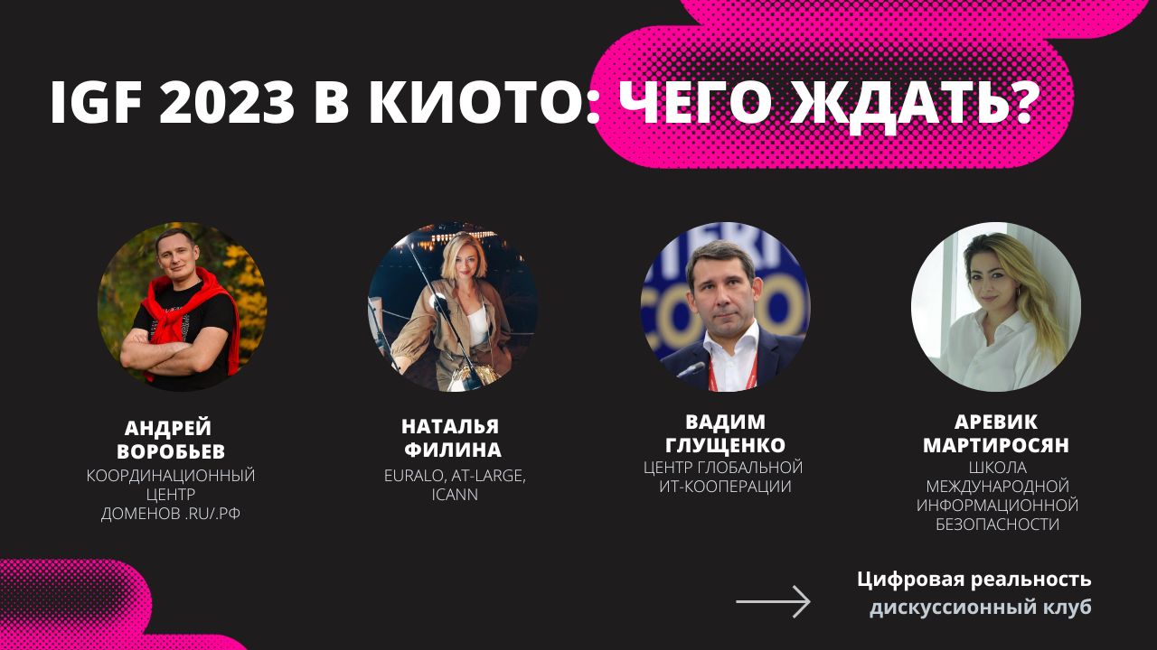 On October 5, the Digital Reality discussion club was streamed, the main topic being the upcoming global Internet Governance Forum. IGF 2023 will be held in Kyoto, Japan October 8 to 12.