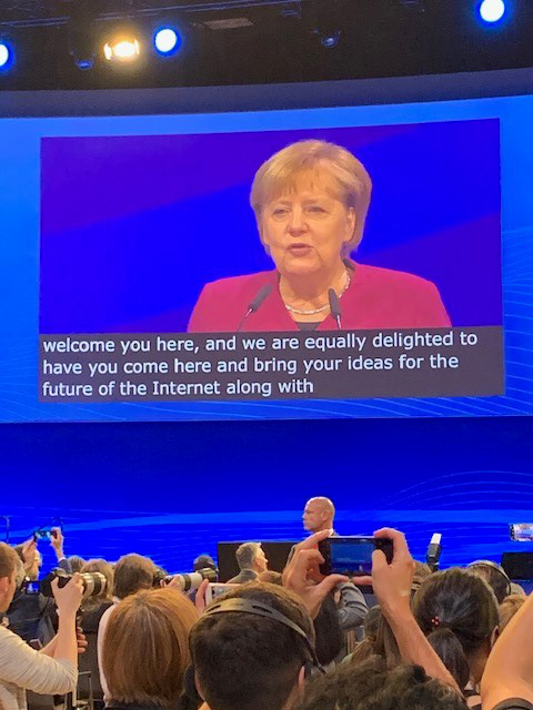 На открытии также выступила Федеральный канцлер Германии Ангела Меркель. Она провела параллели между Берлинской стеной, 30-летие падения которой отмечалось в этом году, и новыми «цифровыми стенами», которые человечество сейчас возводит в интернете: «Мы часто говорим о суверенитете в интернете, и он действительно важен. Однако мы часто понимаем под этим словом совершенно разное. Суверенитет не должен определяться ущемлением прав на доступ, цензурой или протекционизмом. При этом мы должны четко понимать, что такое свобода и где ее границы. Мы не должны защищать одних людей в ущерб другим».