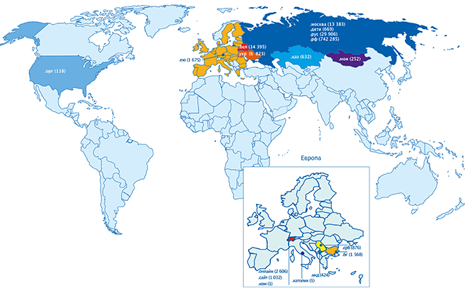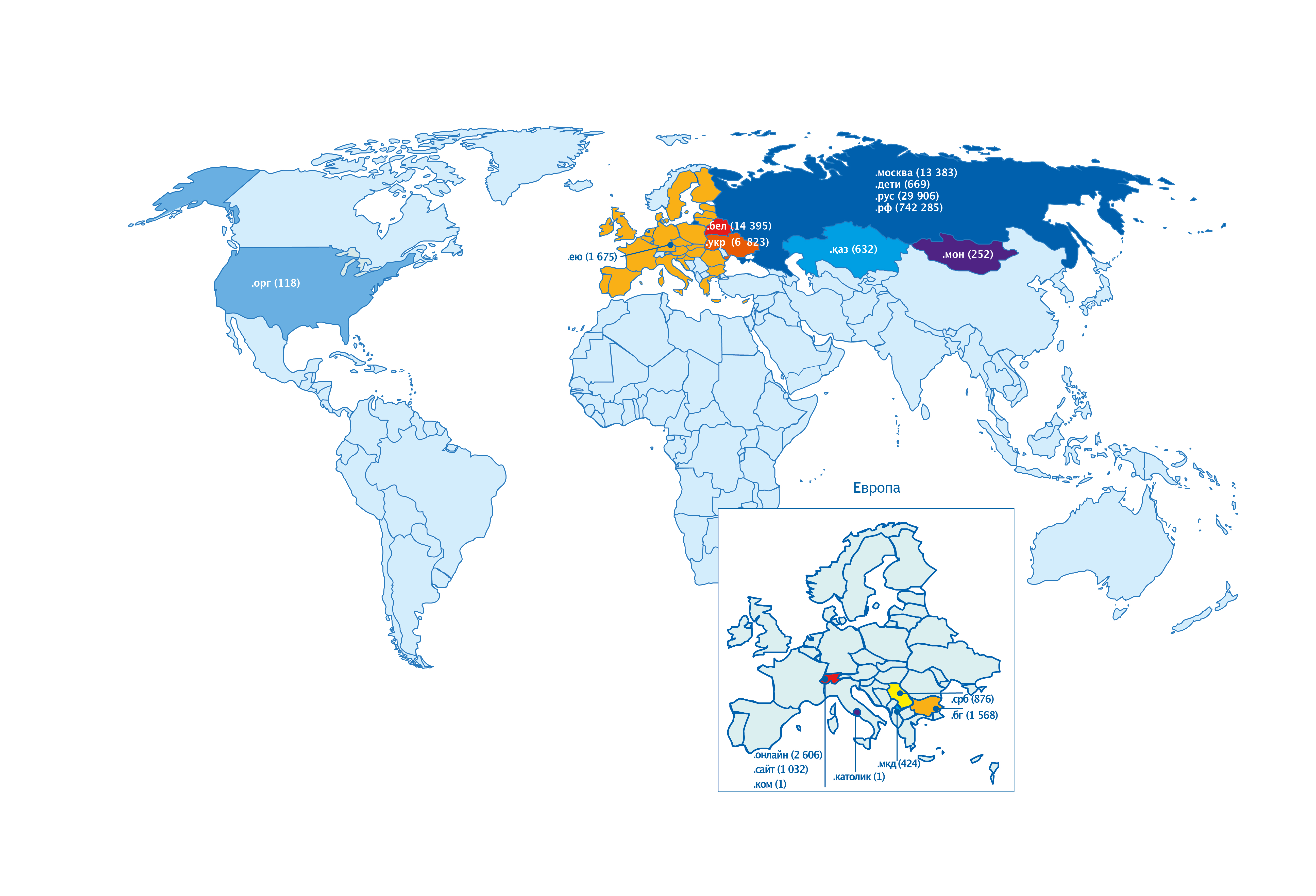 .РФ стал примером для многих стран. На сегодняшний день существует 17 доменов верхнего уровня, записанных кириллическим шрифтом. 9 из них являются национальными IDN-доменами, а 8 – общими доменами верхнего уровня. Свои кириллические домены верхнего уровня зарегистрировала большая часть стран, где применяется кириллица. Это Россия, Беларусь, Украина, Сербия, Болгария, Македония, Казахстан, Монголия, а также Евросоюз.