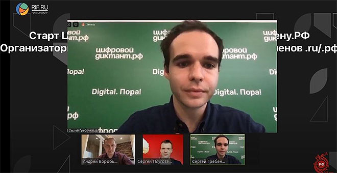 Сергей Гребенников (РОЦИТ) подчеркнул значимость Цифрового диктанта. «Во Всероссийский цифровой диктант, который проходил с 28 марта по 11 апреля, были интегрированы несколько вопросов, связанных с доменами. По его результатом стало понятно, что среди наших пользователей низкий уровень знаний о доменной индустрии. И после этого от Координационного центра поступило предложение приурочить к 10-летию домена .РФ новый Цифровой диктант, посвященный этому событию и русскоязычным доменам в частности. С сегодняшнего дня на сайте 10rf.digitaldictation.ru доступны 13 вопросов, какие-то могут показаться чуть-чуть скучными, потому что они технические, но все они помогут узнать, каким образом устроена доменная индустрия и домен .РФ в частности».