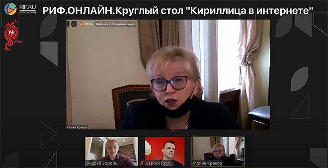 «Кириллица в интернете – это не только возможность доставки цифрового контента на русском языке, это и возможность сохранения миноритарных языков, что важно для нашей многонациональной страны, а также не стоит забывать, что русский язык - это язык международного общения и, самое главное, язык межнационального общения. Мы много говорим о месте онлайн-пространства в культуре, но не стоит забывать и о культуре в онлайн-пространстве. Не так давно было подписано соглашение о сотрудничестве между МГЛУ, АДЭ и Координационным центром, а теперь в МГЛУ создана новая кафедра «Информационная культура в цифровой экономике», которая может стать стартовой площадкой для совместных научных разработок. Ведь тема многоязычия в интернете сегодня очень актуальна и В Европе, и в СНГ, и в Российской Федерации», – отметила Ирина Краева (МГЛУ).