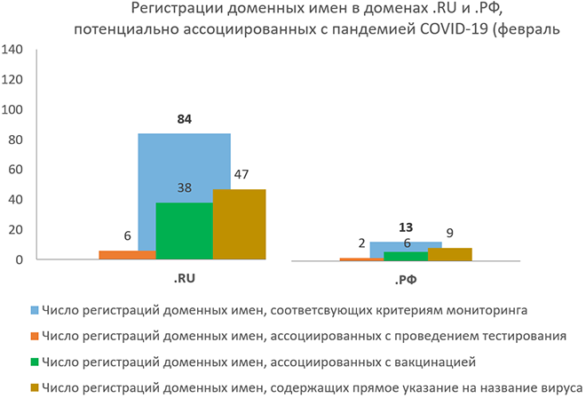По данным мониторинга реестра национальных доменов .RU и .РФ, который регулярно проводится Координационным центром доменов .RU/.РФ, в феврале было зарегистрировано 97 доменов, связанных с темой коронавируса и мерами по сдерживанию пандемии. В зоне .RU появилось 84 «коронадомена», в .РФ – 13.