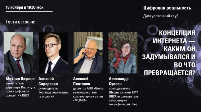 - Михаил Якушев — заместитель директора Института права цифровой среды НИУ ВШЭ;