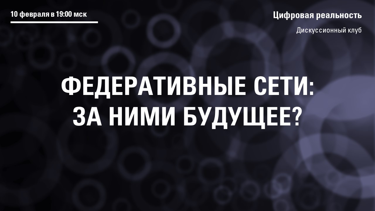 10 февраля состоялась первая в этом году встреча дискуссионного клуба «Цифровая реальность», посвященная федеративным сетям.