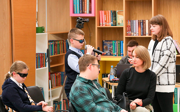 Наталья Аракчеева, советник директора РГДБ, рассказала участникам, какие возможности есть у библиотеки для обслуживания незрячих пользователей: «Например, на одном из компьютеров в зале Художественной литературы и литературоведения № 234 (11+) установлена программа экранного доступа NVDA, благодаря которой незрячие читатели могут пользоваться ресурсами интернета, в том числе читать электронные книги». Некоторые из присутствующих школьников сказали, что они не первый раз в библиотеке и посещают занятия проекта для подростков с нарушением зрения «Литературные путешествия как способ знакомства с историй и культурой».