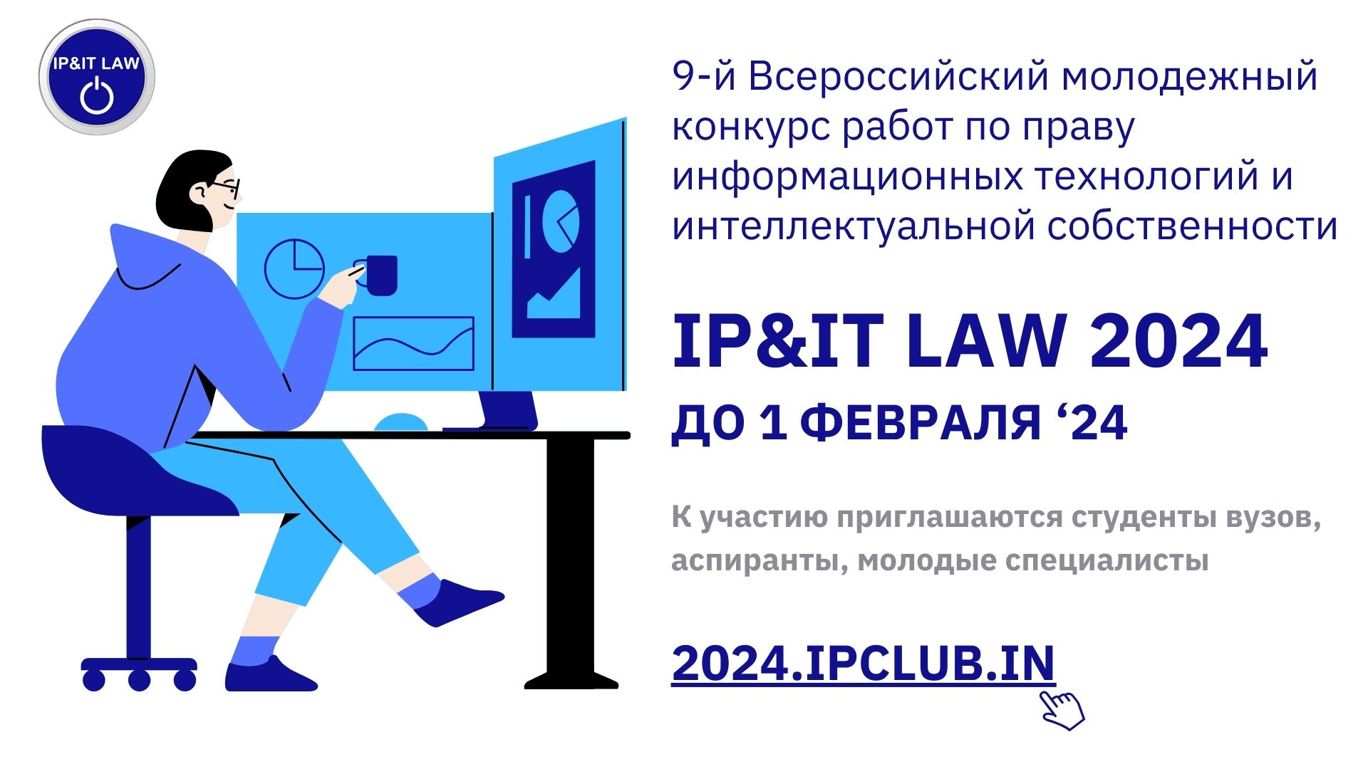 До 1 февраля продолжается прием работ на 9-й Всероссийский молодежный конкурс работ по праву информационных технологий и интеллектуальной собственности – IP&IT LAW 2024. Конкурс традиционно проводится Координационным центром доменов .RU/.РФ и IP CLUB под эгидой Всемирной организации интеллектуальной собственности (WIPO), при поддержке Суда по интеллектуальным правам и Торгово-промышленной палаты РФ.