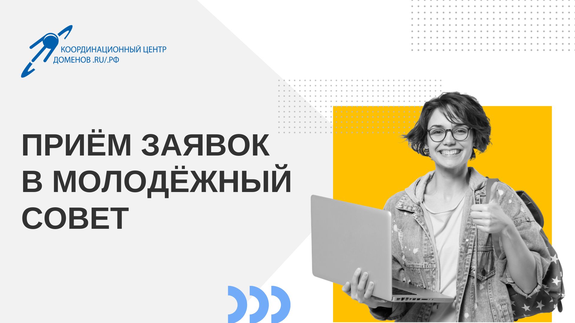 Координационный центр доменов .RU/.РФ объявляет о наборе нового состава Молодёжного совета! Это уникальная возможность для молодых специалистов принять участие в формировании будущего российского интернета и внести свой вклад в развитие национальных доменов .RU и .РФ.